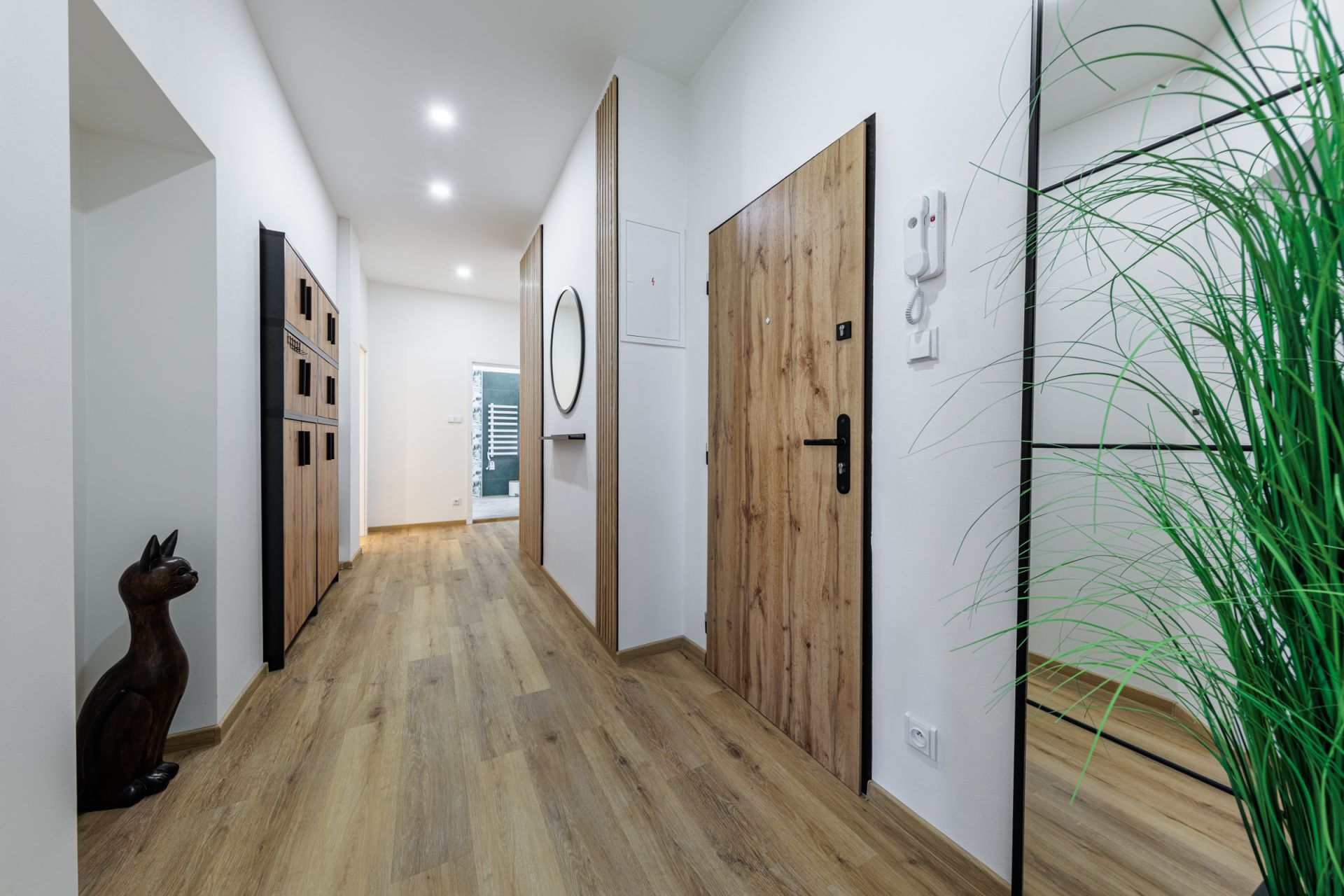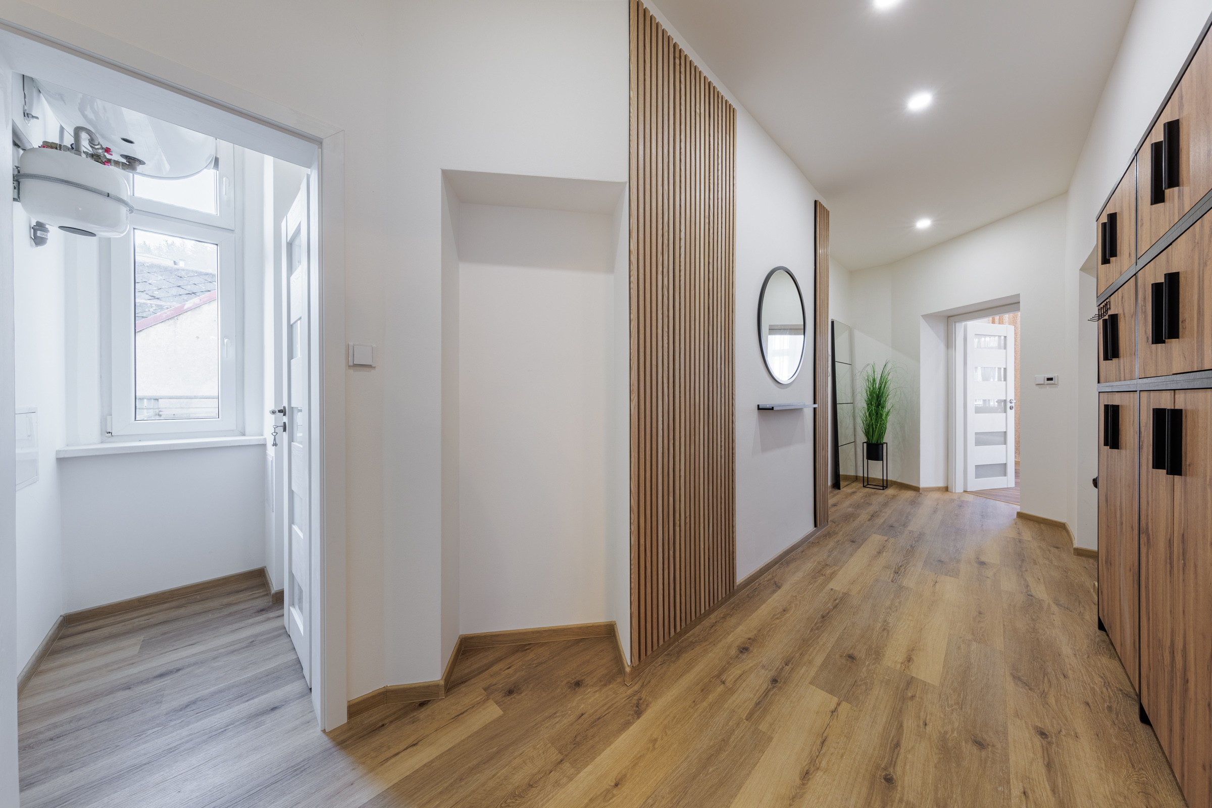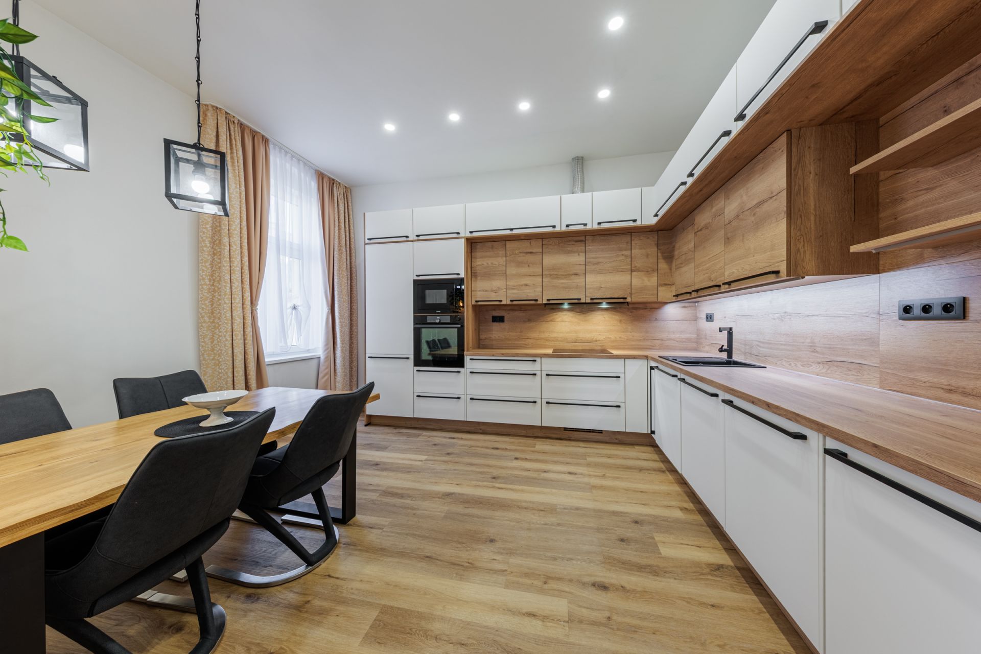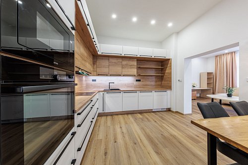 V uplynulém roce prošel byt kompletní, nákladnou a pečlivě provedenou rekonstrukcí. Důraz byl kladen na kvalitu materiálů, design i funkčnost. Výsledkem je moderní, elegantní prostor s lehkou špetkou luxusu.