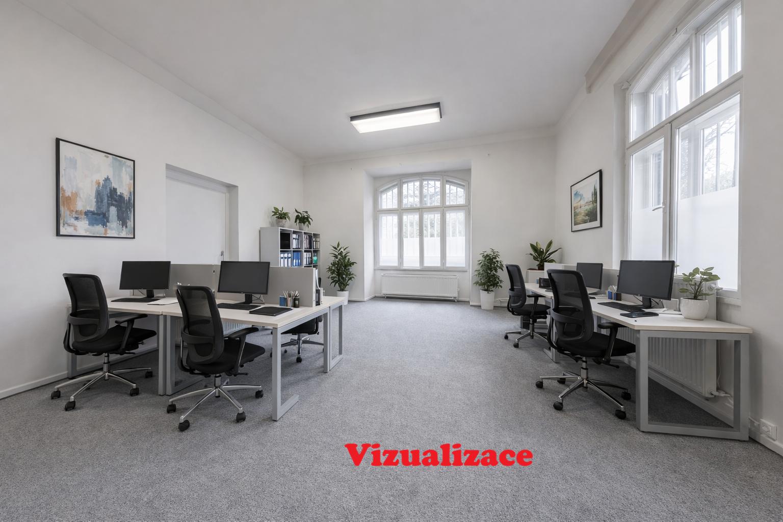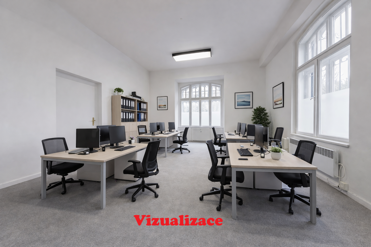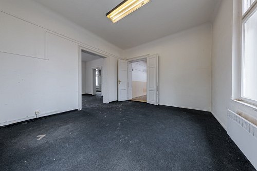 Nachází se zde 4 velké místnosti, jedna menší místnost a prostor se sprchou a toaletou. Dispozice umožňuje okamžité využití jako kanceláře, ordinace či reprezentativní zázemí firmy.
