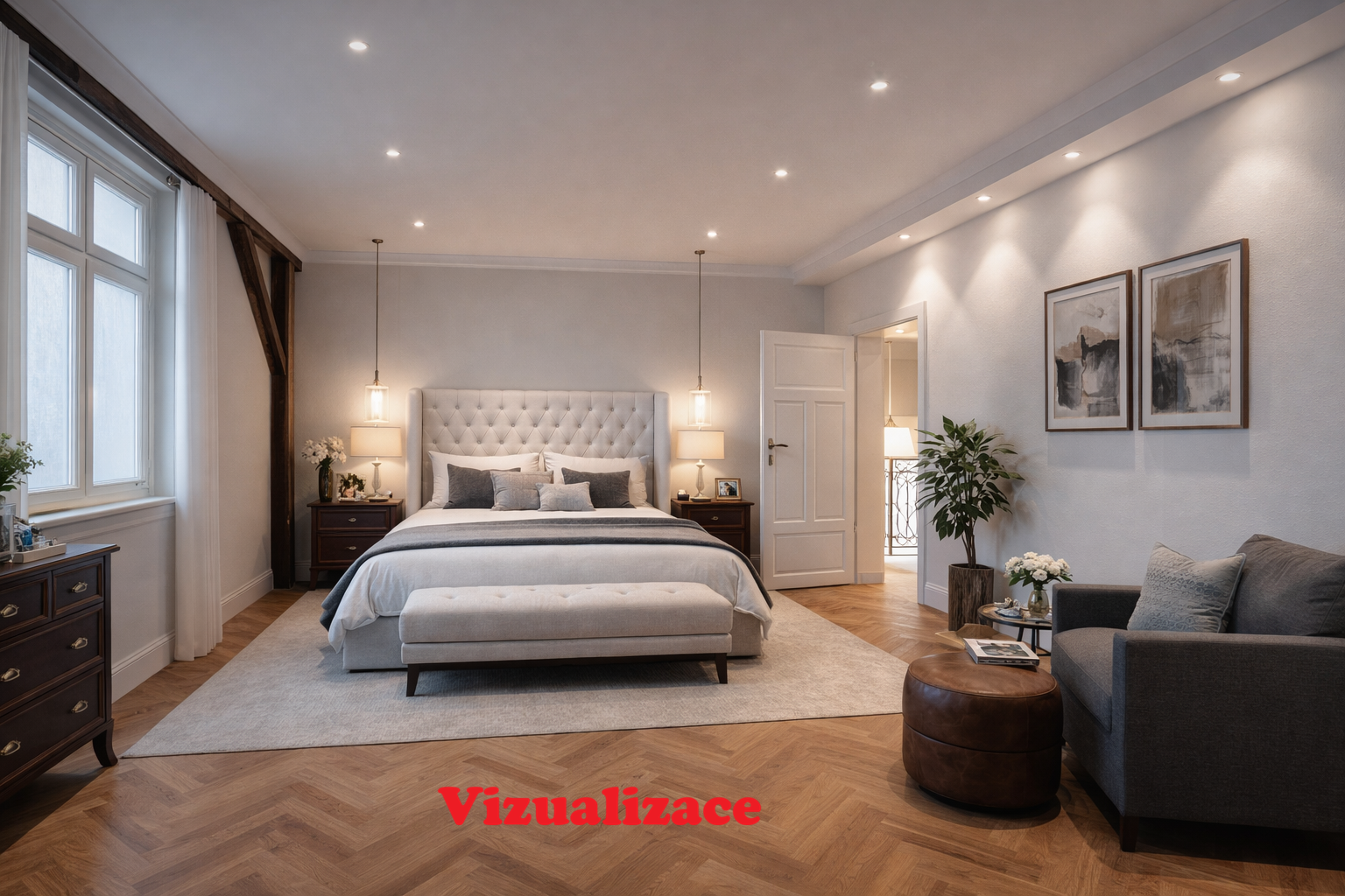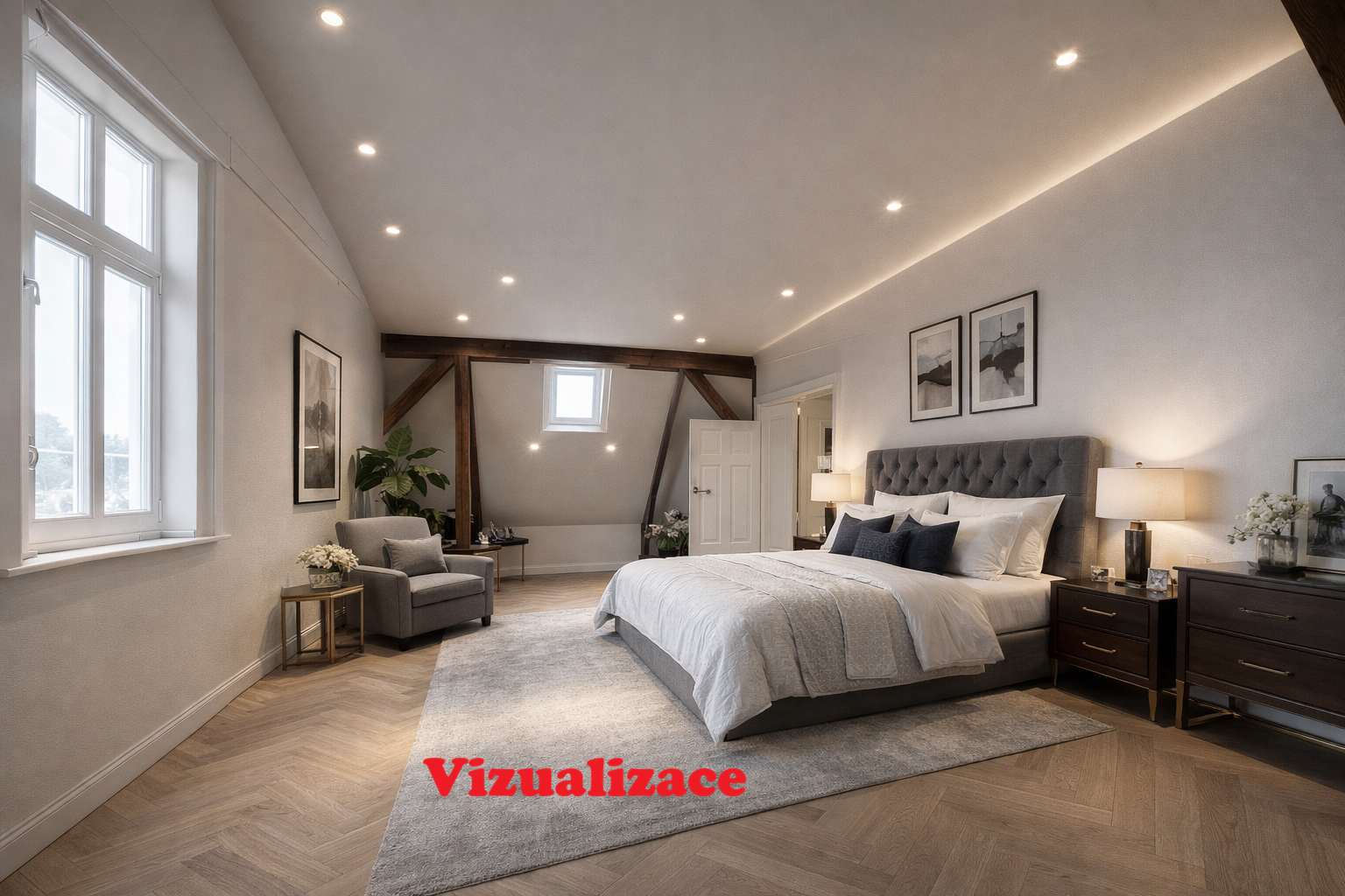Opět 4 velké místnosti, prostorná koupelna a samostatné WC. Patro může sloužit jako soukromá rezidenční část nebo další kancelářské / komerční prostory.