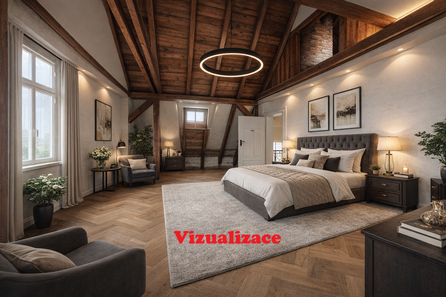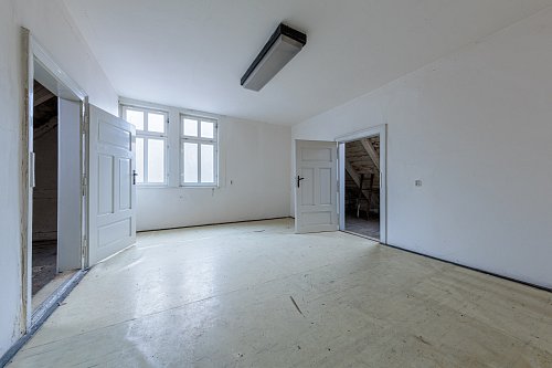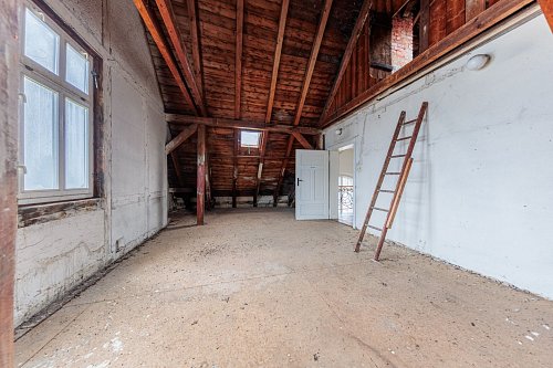 2 místnosti a půdní prostor s možností další vestavby či rozšíření užitné plochy.