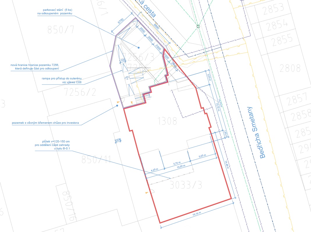 pozemek cca 180 m² na pravé straně (možnost vybudování parkovacích míst)