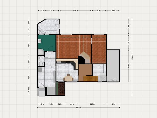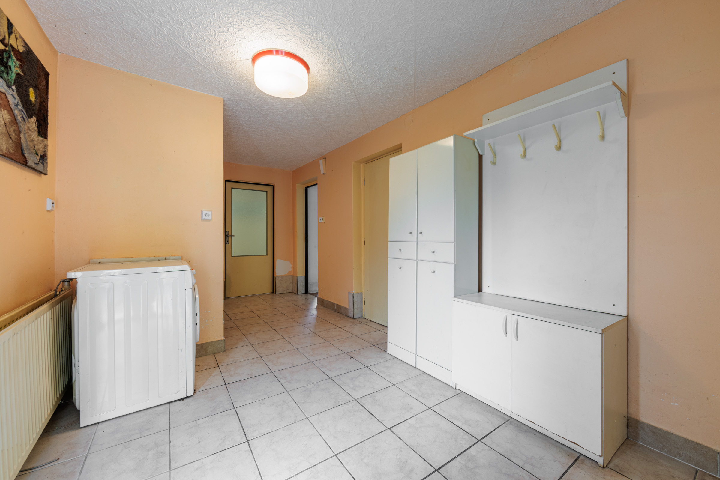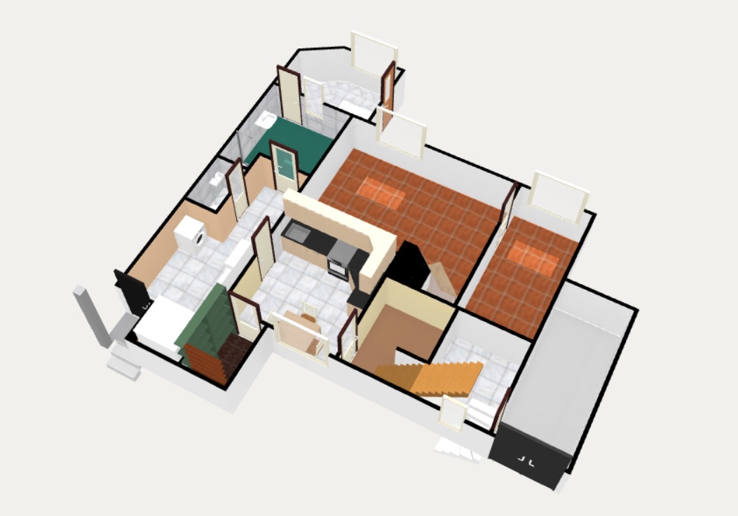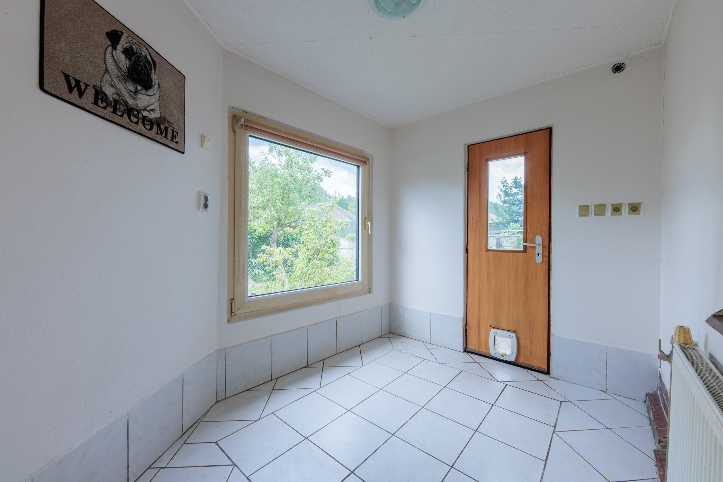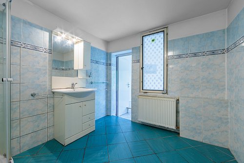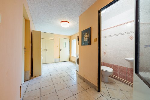 Dům je situován na pozemku o rozloze 298 m², z toho 193 m² tvoří zastavěná plocha a 105 m² zahrnuje předzahrádku a dvorek za domem. Vstup do domu je po třech schodech vedoucích do předsíně, kde nalezneme vestavnou skříň a samostatné WC. Koupelna je vybavená sprchovým koutem a umožňuje průchod do zadní chodby a na dvorek.