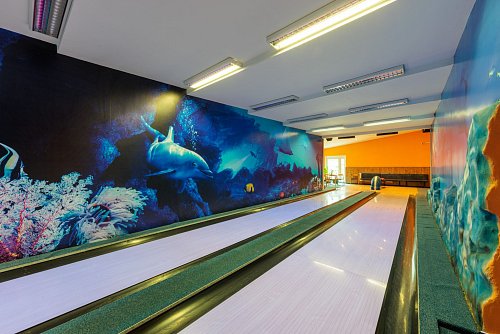 Hosté mohou využít také sdílenou kuchyň, která je plně vybavena, a na místě je k dispozici i kávovar. Hotel dále nabízí sportovní zázemí – dvě bowlingové dráhy a dvě kuželkové dráhy, což vytváří atraktivní místo nejen pro rekreační pobyty, ale i pro firemní akce nebo oslavy. K dispozici je také multifunkční sál vhodný pro rodinné oslavy, svatby či firemní meetingy s kapacitou až 50 osob.