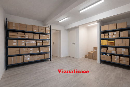V zadní části se nachází prostorný sklad, který nabízí technickou místnost, sprchový kout na přepravky, dvě lednice, regály a další příruční sklad. Velkou výhodou je zadní vchod, který zajišťuje možnost zásobování.